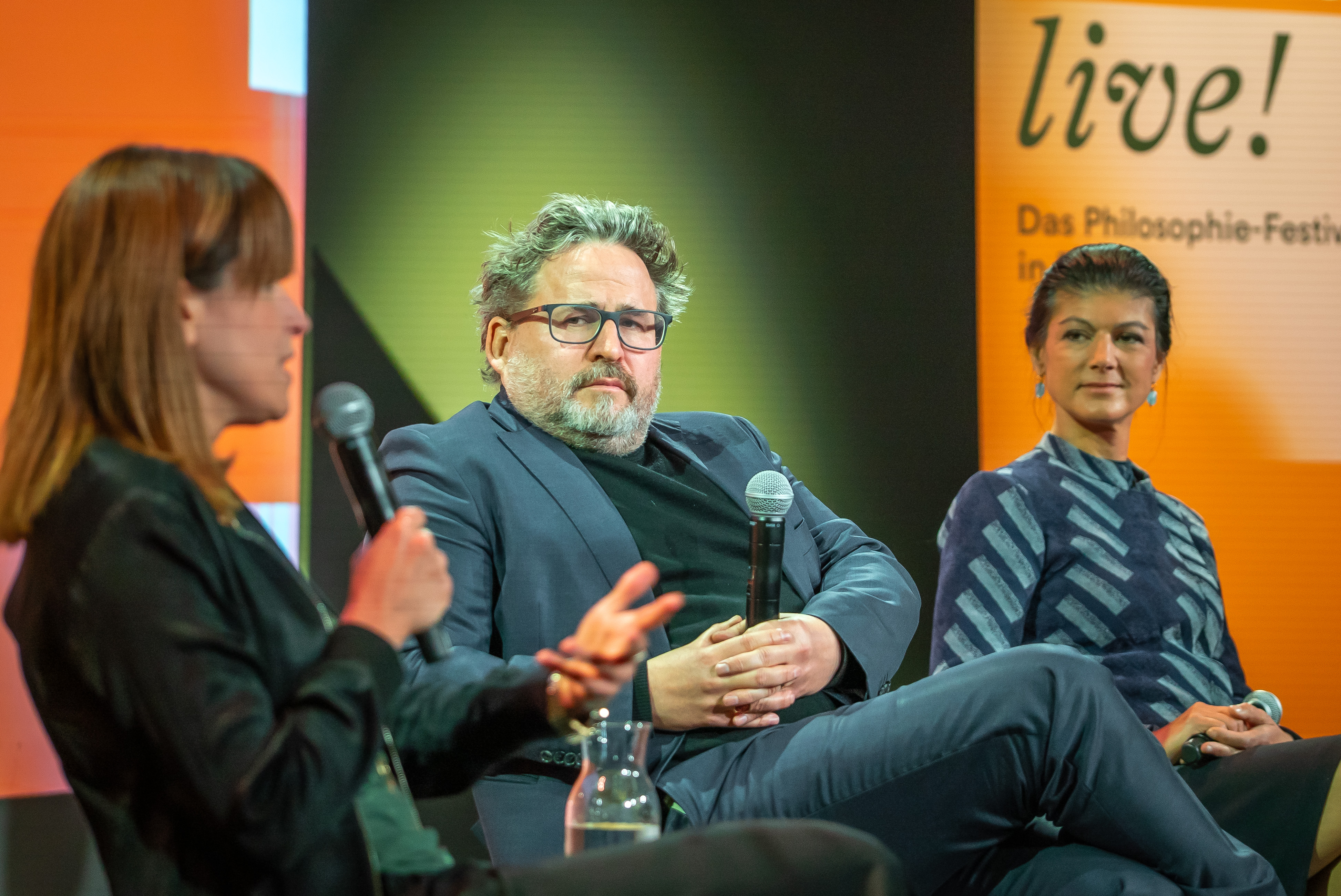 Kontrovers besetzt war auch die Diskussion zum Thema »Was ist Populismus?« mit der Politikwissenschaftlerin Julia Reuschenbach und Sahra Wagenknecht, die kurz vor der »Philo.live!«-Veranstaltung ihren Vorsitz beim BSW aufgegeben hatte. Hier wurde die Spannung zwischen den beiden Diskutantinnen zwar nicht aufgelöst, aber die Debatte zeigte doch, wie man über ein emotional hochaufgeladenes Thema wie »Populismus« in rationaler Weise diskutieren kann. Dabei zeigte Julia Reuschenbach die wissenschaftlichen Kriterien auf, die kennzeichnend für »Populismus« sind, und versuchte, die Argumente ihrer Gesprächspartnerin in ebendiese Kriterien einzuordnen, während Sahra Wagenknecht ausführte, weshalb ihre politische Haltung sich diesen Kriterien nicht zuordnen lässt. Dem Publikum wurde dabei klar, dass es nicht so einfach ist (und womöglich sogar verkehrt wäre), das BSW generell als »populistisch« zu etikettieren. Vielleicht wäre eine solche Einordnung in bestimmten Politikfeldern (etwa in der Haltung zum russischen Angriffskrieg) möglich gewesen, leider aber gab es bei dieser Veranstaltung keine Fragerunde aus dem Publikum.